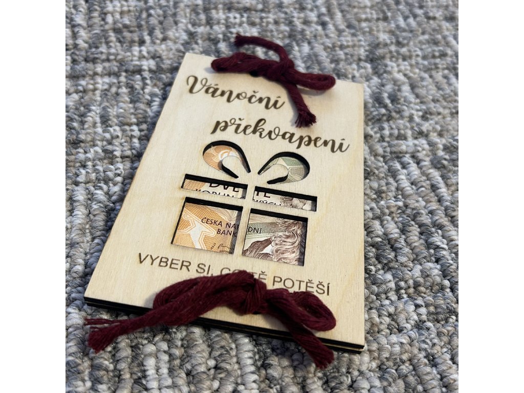Krabička na peníze vyrobena z dřevěné překližky.
